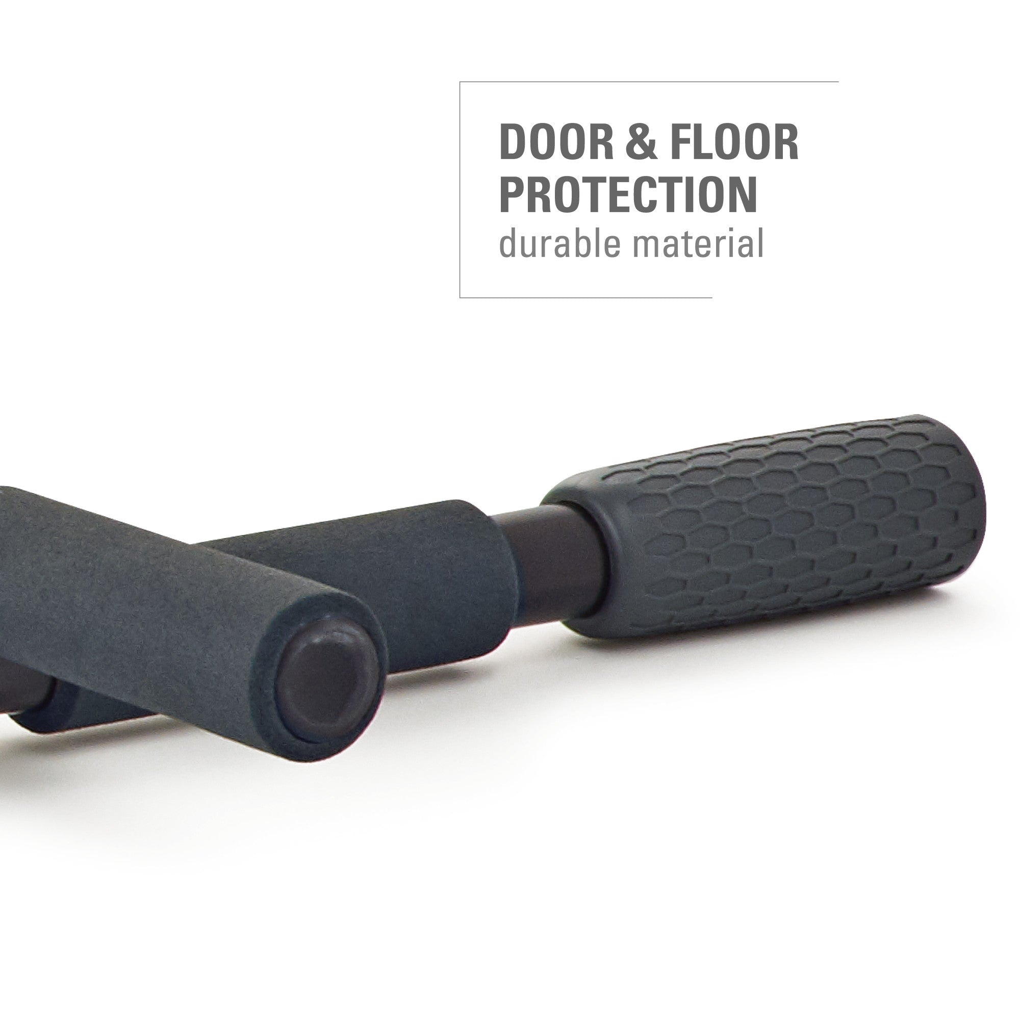 - Portable gym that can be used as a doorway pull up bar or for sit-ups, pushups, and dips