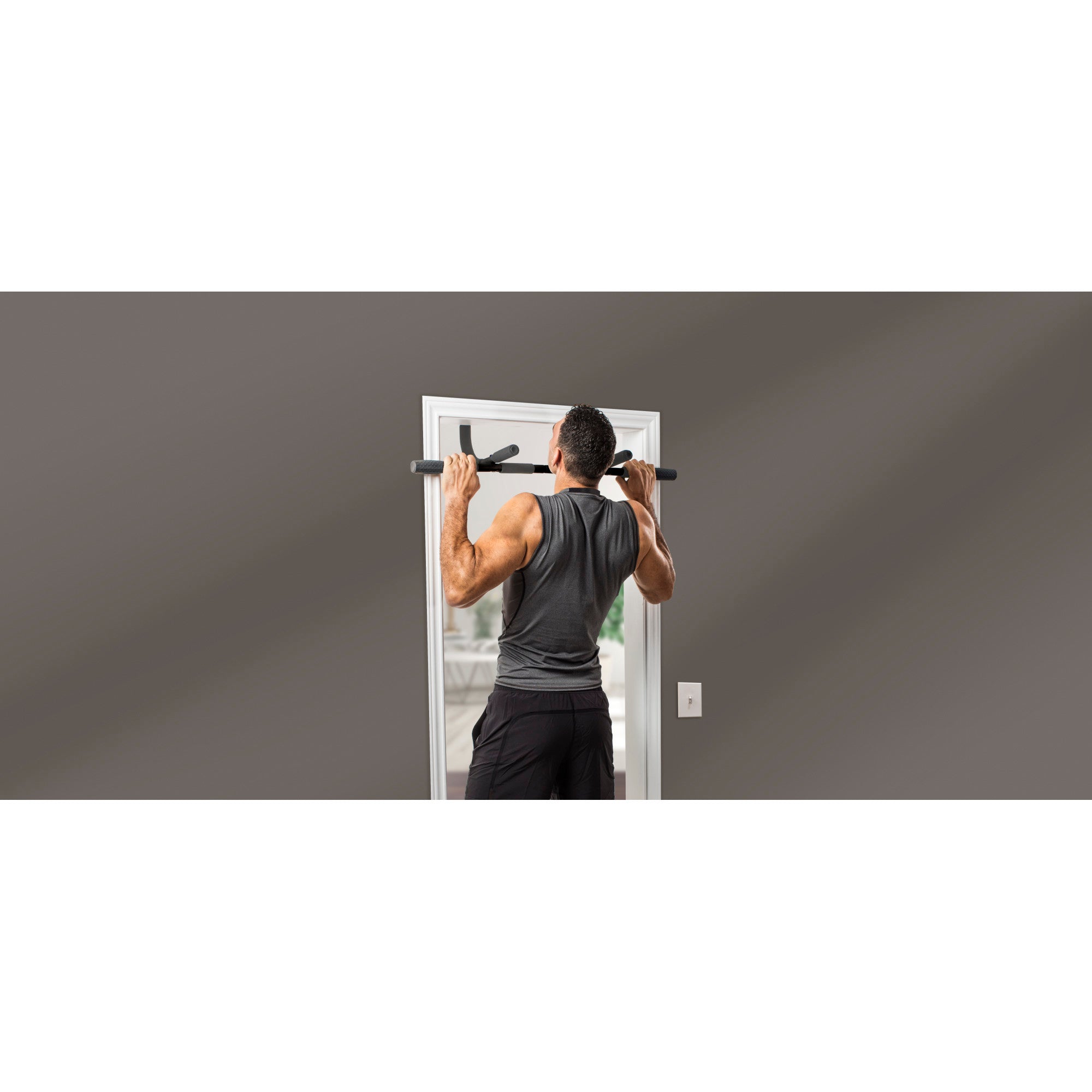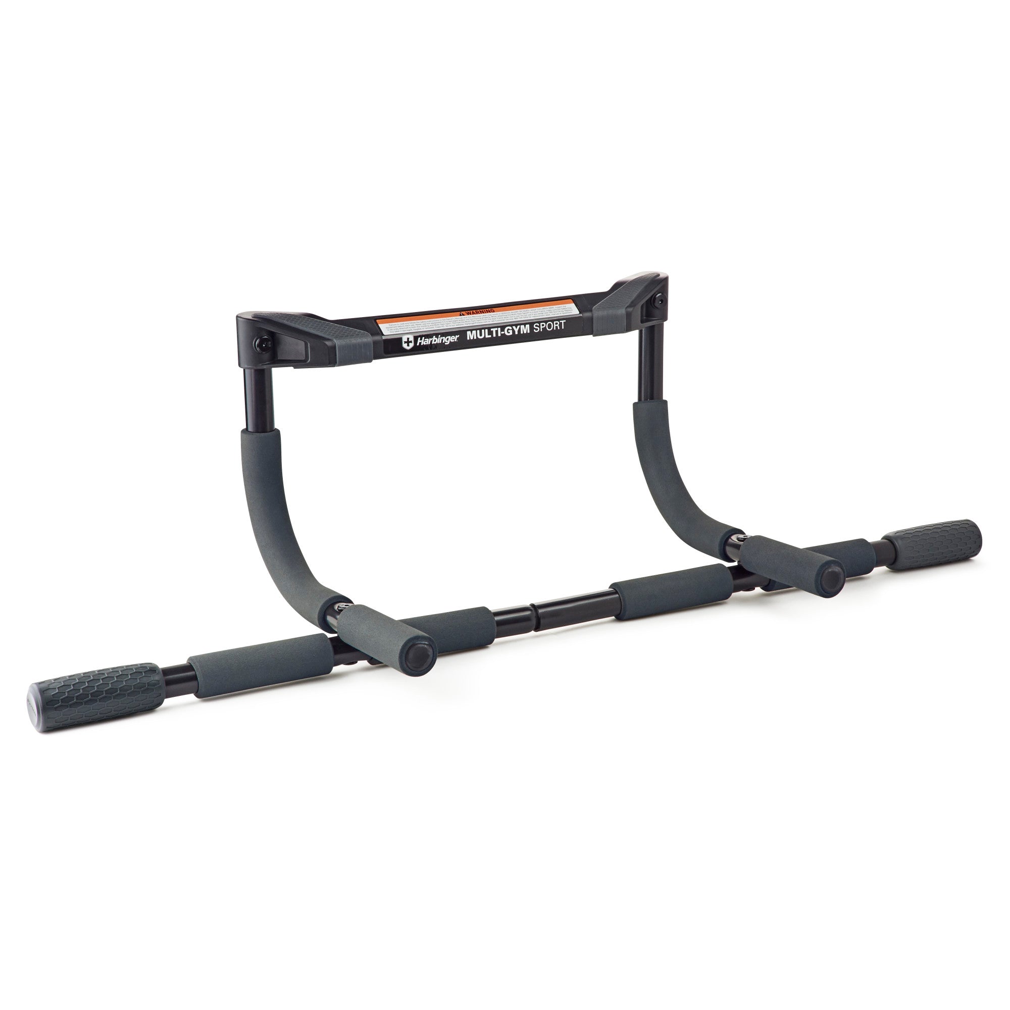 The Harbinger Multi-Gym Sport is a portable gym system that can be used to do pull-ups, sit-ups, push-ups, and dips. The Harbinger Multi-Gym Sport targets arms, chest, core, and back muscles with workouts that ensure maximum muscle engagement. It features padded handles that allow for 3 grip positions to perform normal grip, close grip, and hammer grip pull-ups. The 300 lb. weight capacity makes it safe to use with a weight vest. Placed on the floor, the Harbinger Multi-Gym Sport can be used for sit-ups, push-ups, and dips; padded handles provide comfort and help to ensure correct form. Easy to install, the Multi-Gym Sport does not require any drilling and securely fits door frames 27 – 33" wide and up to 6 inches deep. Assembled dimensions: 12" x 36.5" x 11"; weight 4.8 pounds.