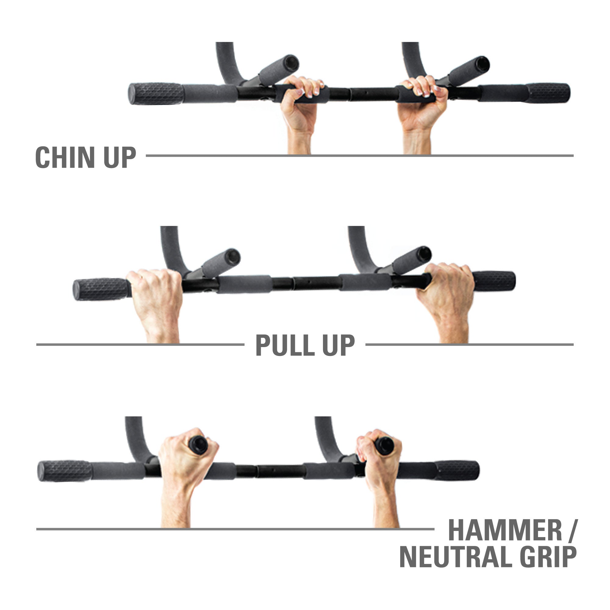 - Handles for 3 grip options: close, normal or hammer grip pullups; padded handles ensure comfort for sit-ups, pushups and dips