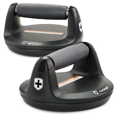 Take your push-ups to the next level with the Harbinger Pushup Elite. The handles are designed to rotate during your push-ups, increasing muscle activation as you dip lower. As a result, you can increase your muscle strength and definition in your arms, shoulders, back, chest, and abs. The handles also reduce joint strain in your wrists and elbows through natural body movement, with ergonomic grips that help distribute weight evenly and reduce pressure points. And thanks to the handles' off-road-style tread, the Elite handles securely grip all floor surfaces. Designed to support users up to 400 lbs.