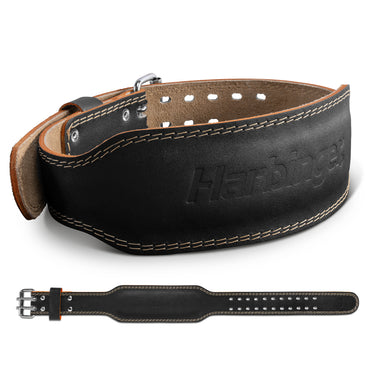 The Harbinger 4" Padded Leather Weightlifting Belt 2.0 is designed for optimal performance and comfort to support heavy lifting. Its updated tapered edge allows for greater range of motion during Olympic lifts without sacrificing support. This heavy-duty and rigid belt helps increase intra-abdominal pressure by giving your core muscles something to brace against allowing athletes to add more weight when lifting. Featuring a snug fit that aligns back support and the belt buckle in the ideal position, to reduce interference during weightlifting. Secured with a heavy-duty, dual prong buckle and rollers for easy tensioning and quick adjustments on the fly. Interior foam cushioning provides padding where you need it, while the genuine, split leather construction and double stitching delivers lasting quality and durability. The 4" Belt 2.0 is designed to meet International Weightlifting Federation (IWF) width standards.
