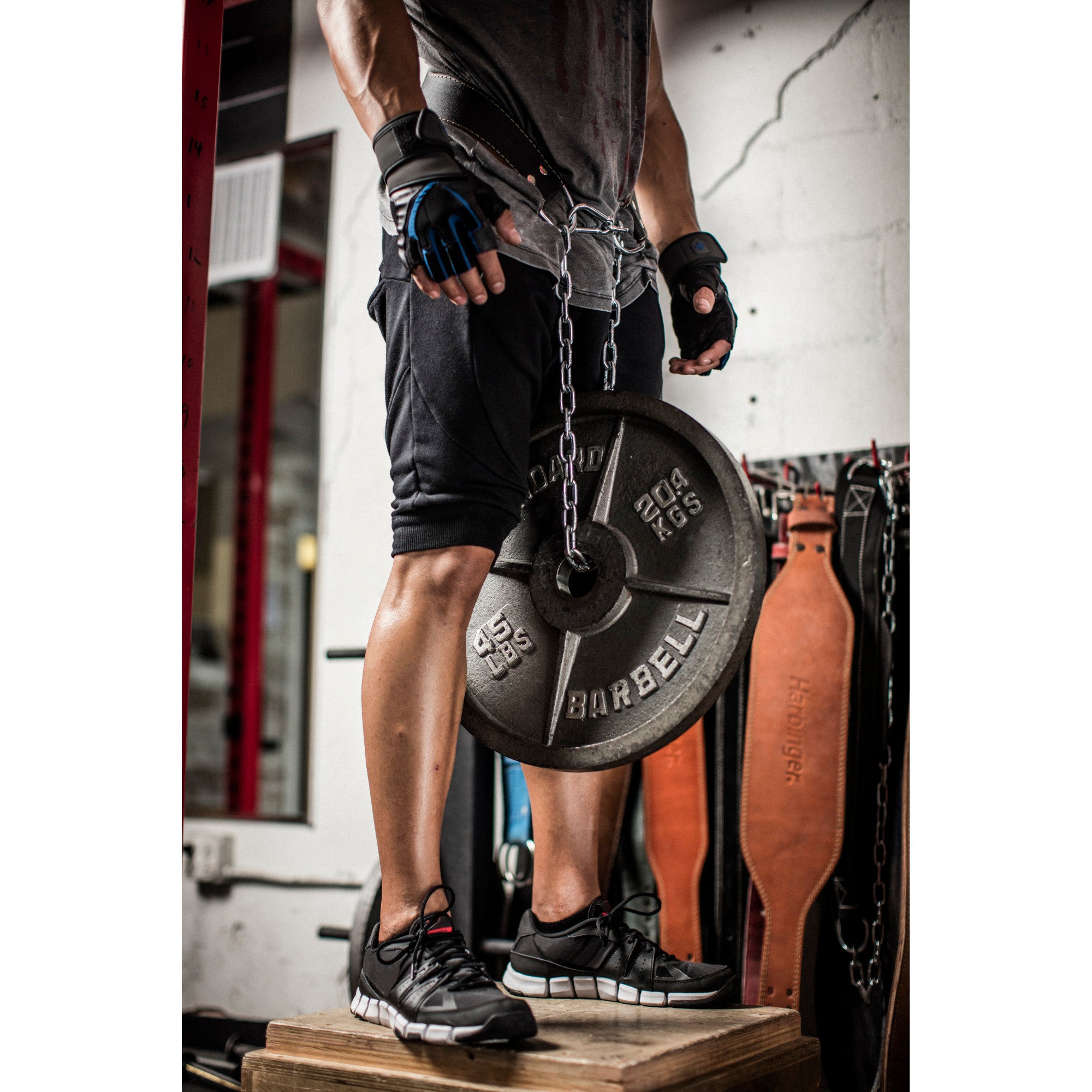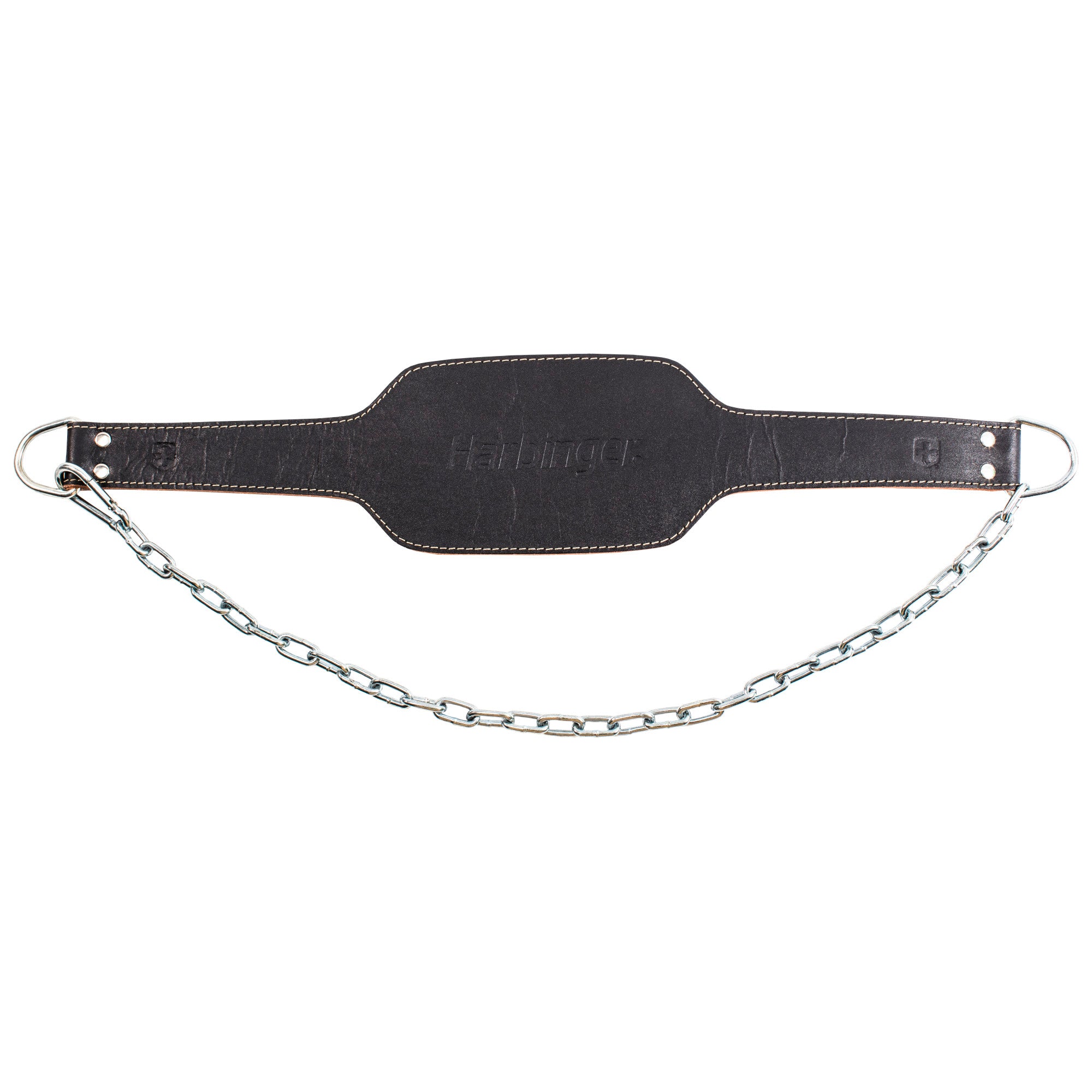 Expand your weight training routine with the Harbinger Leather Dip Belt. The contoured design of this belt provides back and upper body support, fitting comfortably during serious training. The 34" steel chain and carabiner mechanism allows weight to be easily added for chin-ups and dips helping to develop power and strength in triceps and chest. The Harbinger Leather Dip Belt features one-piece all leather construction with heavy-duty steel grommets to secure chain to belt for maximum durability. One-size-fits-all.
