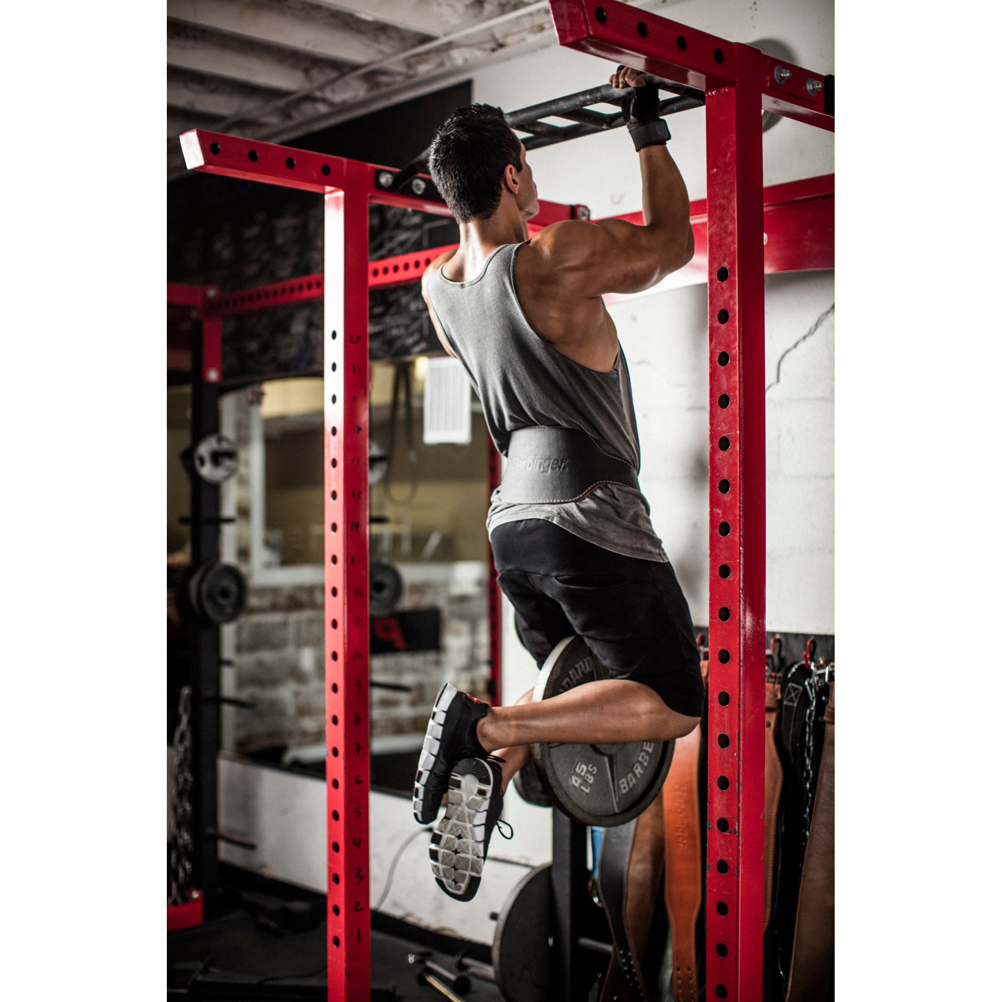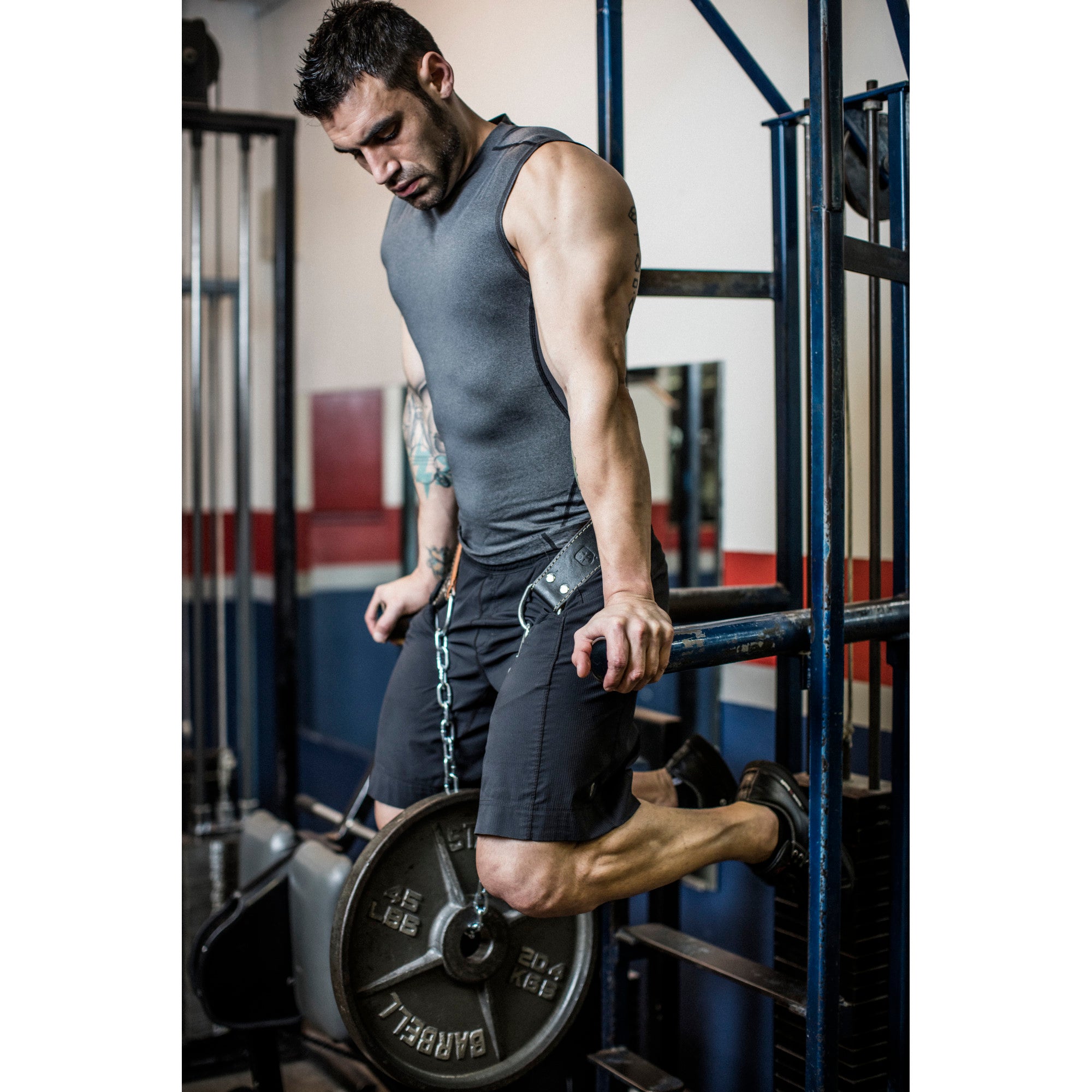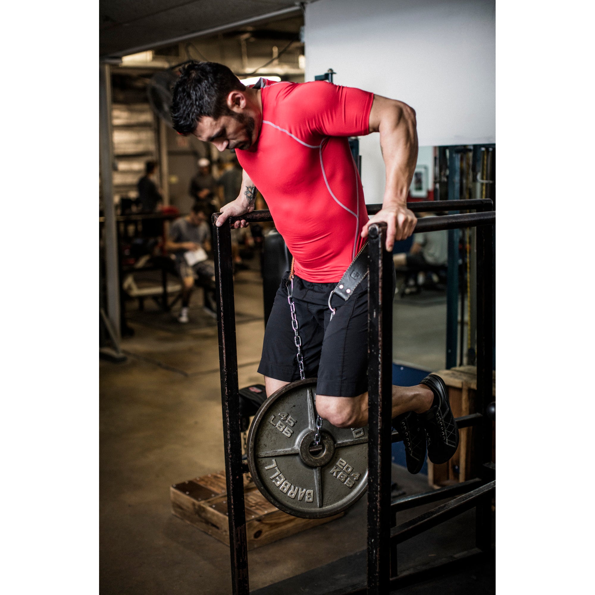 - Extended 34" steel chain and carabiner mechanism to easily add weight for chin-ups and dips