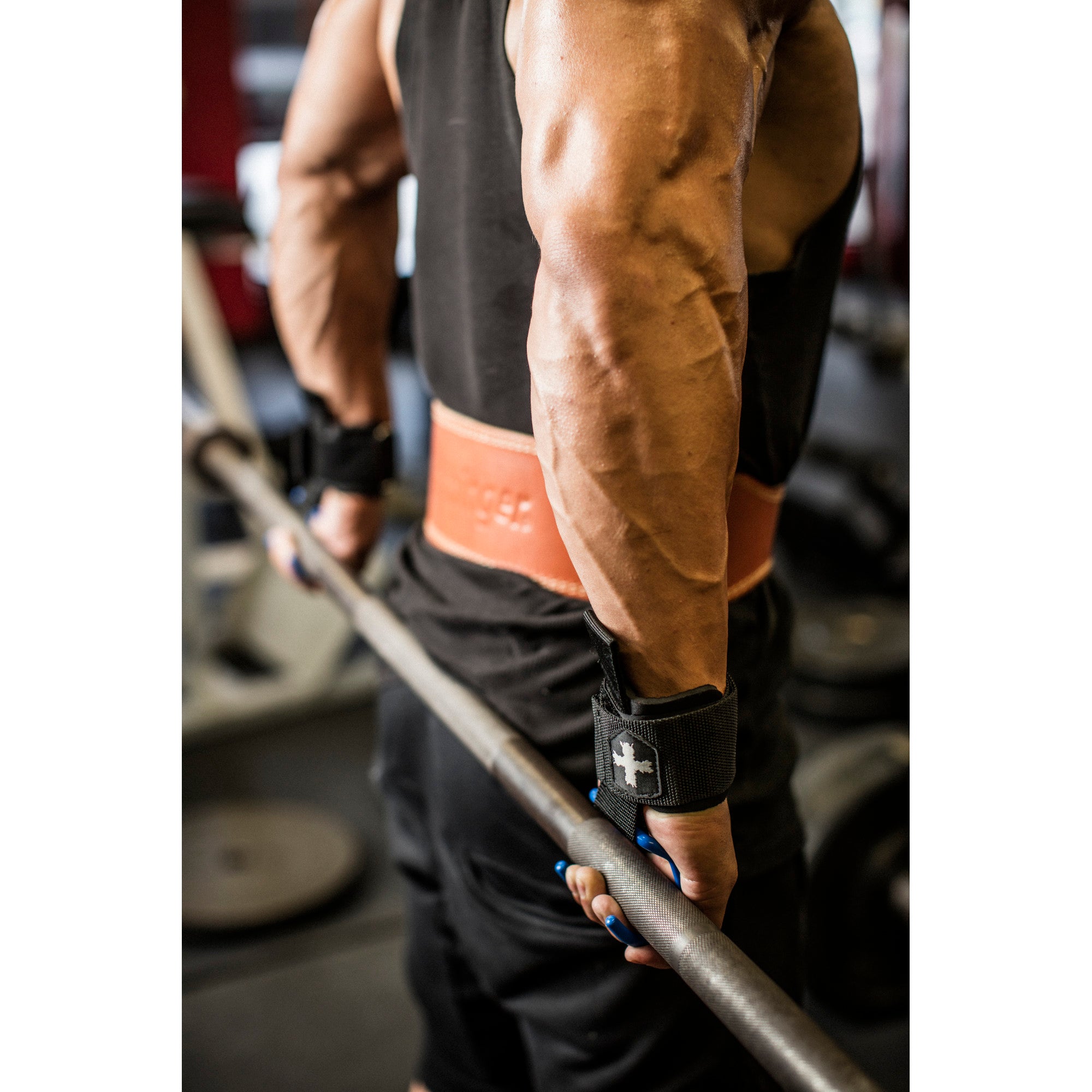 - Neoprene cuff cushions wrist for enhanced comfort when lifting
